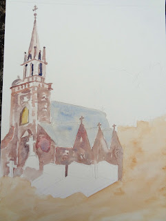 Nous nous sommes retrouvés dans le bourg de Tréméven (ici). Nous avons finalisé la série de croquis trémévénois réalisés au cours de l'année pour l'exposition qui débutera le 16 septembre dans le cadre des journées du patrimoine.